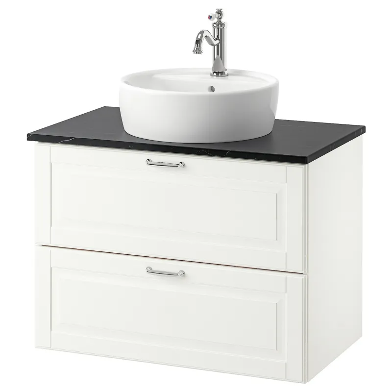 GODMORGON/TOLKEN / TORNVIKEN Masca lavoar+blat+lavoar 45 cm, KasjOn alb/aspect marmura neagra baterie HamnskAr, 82x49x74 cm