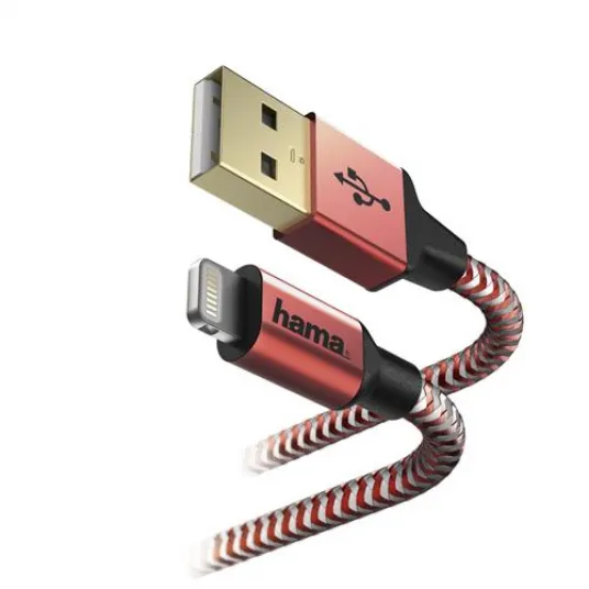 "Светоотражающий" кабель для зарядки и передачи данных Hama, Lightning, 1,5 м, красный