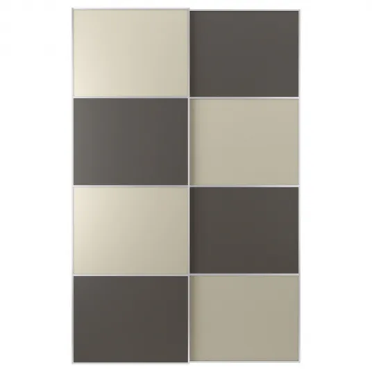 IKEA MEHAMN Set usi glisante, aluminiu 2 fete/gri inchis gri-bej, 150x236 cm