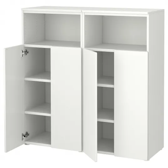 IKEA SMÅSTAD / PLATSA Ansamblu depozitare, alb/alb cu 6 polite, 120x42x123 cmPentru a evita marginile ascutite, toate colturile usilor SMÅSTAD sunt usor rotunjite., Inchide usa lin, incet si silentios., Cadrul se instaleaza usor cu un clic; nu sunt necesare unelte., Picioarele reglabile compenseaza denivelarile podelei., Pentru a ecoomisi resursele naturale si a folosi cat mai mult din arbori, am folosit resturi de cherestea si lemn in placile aglomerate pentru SMÅSTAD., Peretii sunt construiti din materiale diferite si, de aceea, necesita diferite tipuri de dispozitive de fixare. Foloseste-le pe cele potrivite pentru peretii casei tale (se vand separat)., Manerele se vand separat., Se completeaza cu suportul pentru etichete HÄNGIG pentru a pastra lucrurile si a le gasi usor. Se vinde separat., Completeaza cu una dintre cutiile din departamentul IKEA pentru copii pentru a organiza interiorul mobilierului de depozitare sau politele deschise. Se vand separat.222675193222675193