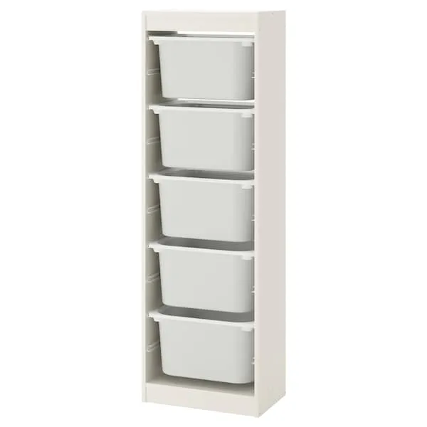 IKEA TROFAST Ansamblu depozitare+cutii, alb/alb, 46x30x145 cm