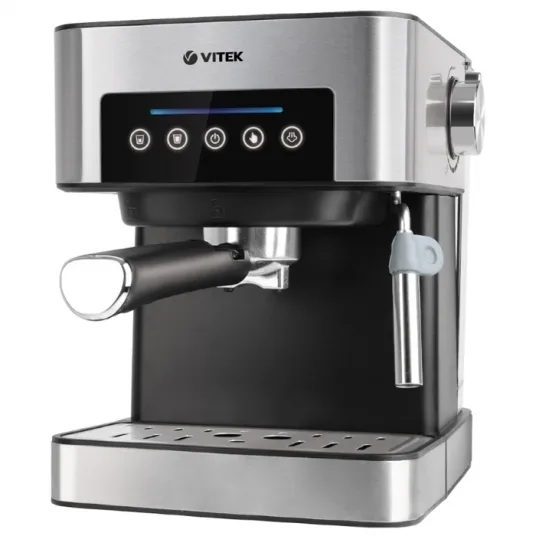, Power output 850W, water tank capacity 1,6l, suitable for coffee powder, black pump pressure 15 bar, 2-cup-function, cappucino system. touch control panel. silver