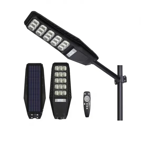 Lampa Solara Stradala 300W, Proiector cu 600 LED-uri in 15 Casete, Incarcare cu Panou Solar incorporat, Telecomanda, cu Senzor de Miscare, Rezistenta IP65 la Apa, Negru