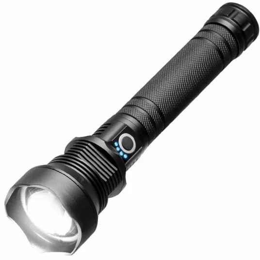 Lanterna LED, Tactica, 2000 lm, Reincarcabila, Rezistenta la Apa, Ideala pentru Camping, Drumetii, Vanatoare, Pescuit, Neagra, Sim Online®