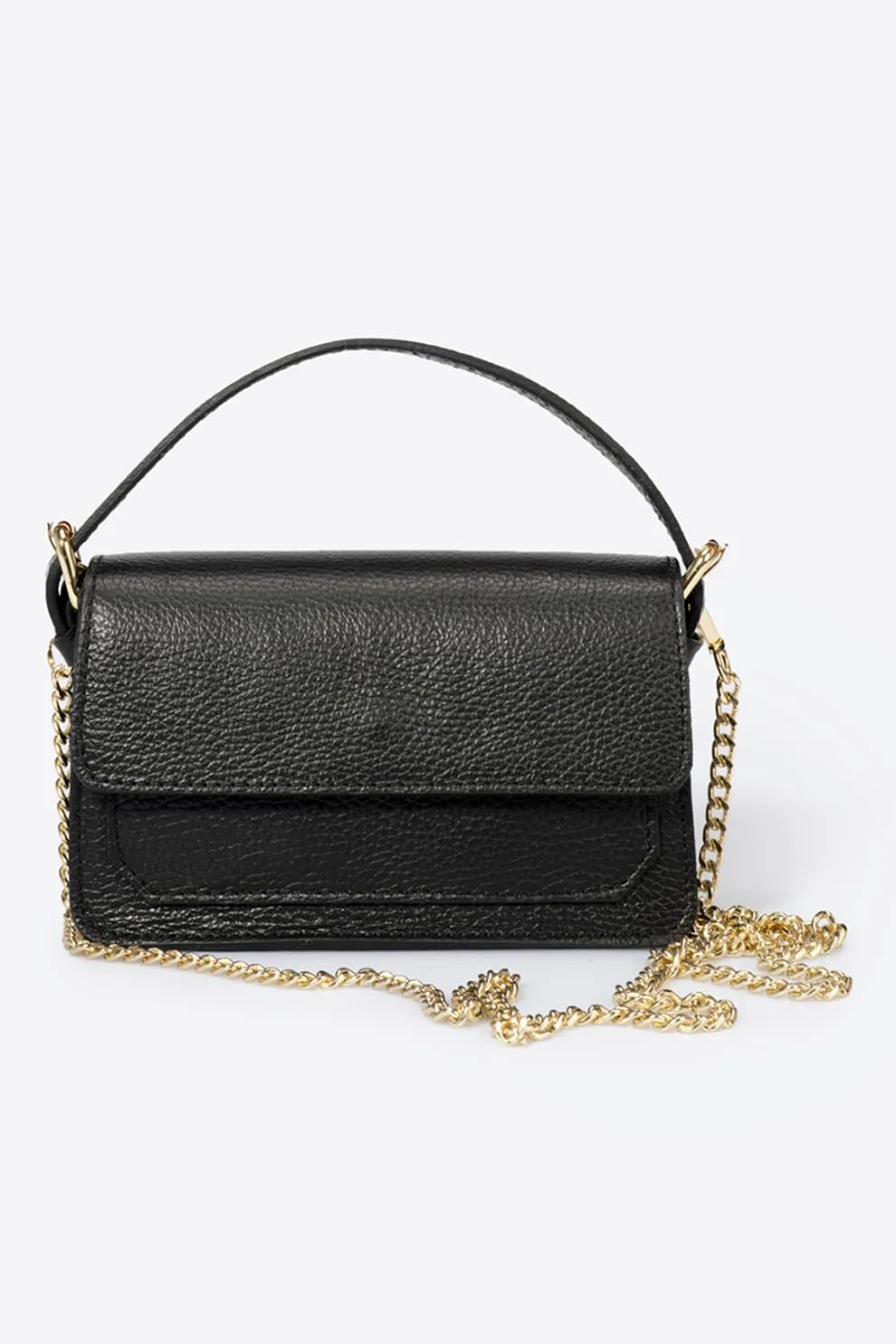 Massimo Castelli, Geanta crossbody de piele cu bareta din lant, Negru