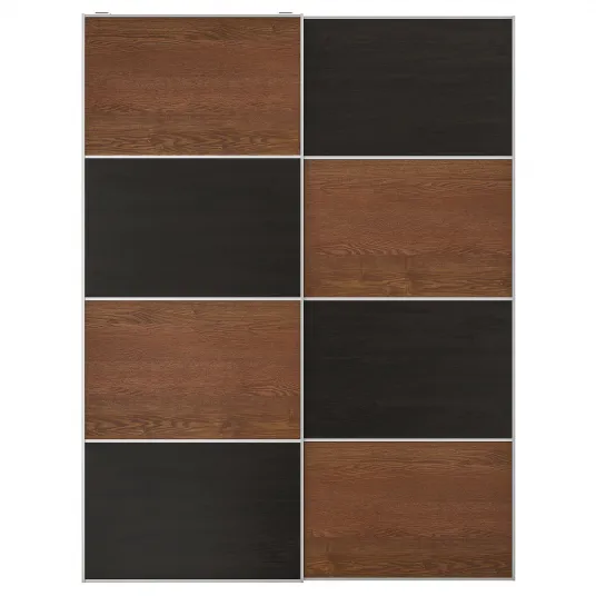 МЕХАМН Комплект раздвижных дверей, черно-коричневый крашеный под ясень/коричневый крашеный под ясень, 150x201 см - IKEA