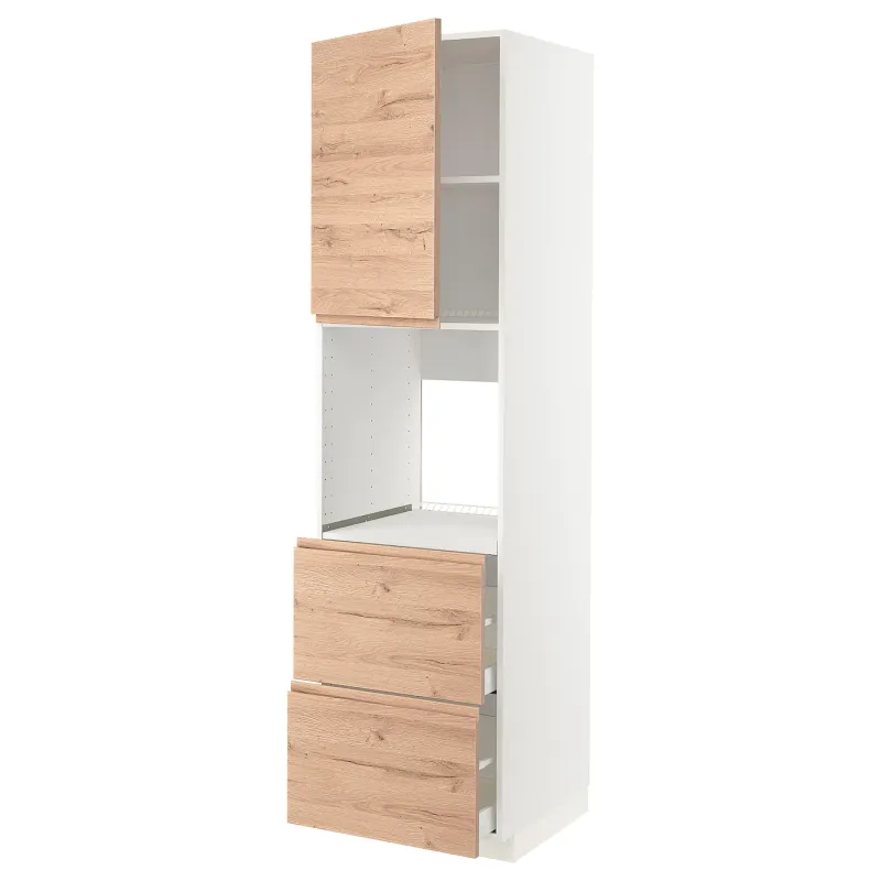 METOD/MAXIMERA Жарочный шкаф высокий+дверца/2 фронта/2 полки, белый/VOXTORP под дуб, 60x60x220 см