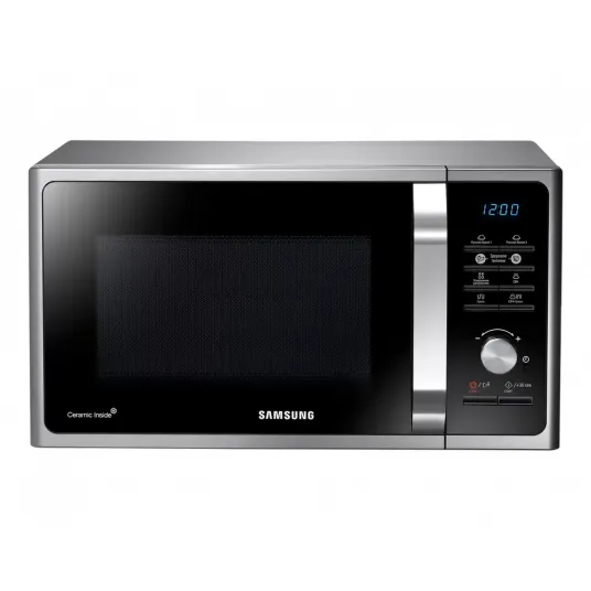 - Микроволновая печь Samsung MG23F302TAS/BW Silver имеет ультратонкий дизайн, который экономит место на столешнице.