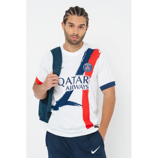 Nike, Tricou cu decolteu la baza gatului, pentru fotbal, Alb optic, Rosu vermillion, Bleumarin, M