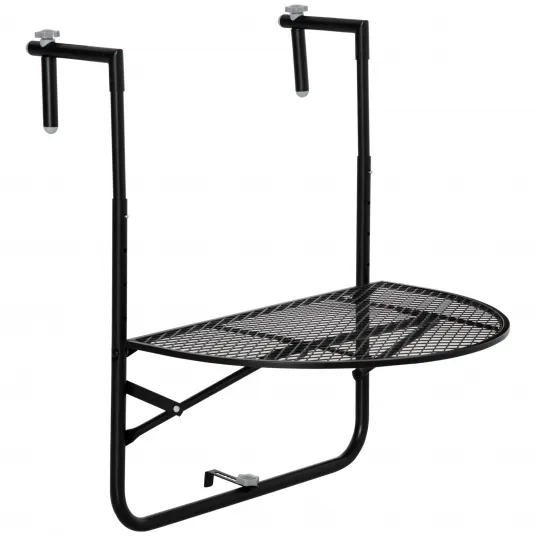Outsunny masa de agatat pentru balcon, masuta metalica de instalare pe perete, masuta pliabila de balcon sau punte cu inaltime reglabila pentru veranda si gradina, NeagraRelaxati-va pe balcon si bucurati-va de o cafea, un ceai sau un fel de mancare cu aceasta masa de balustrada din metal de la Outsunny! Aceasta masa ofera o solutie excelenta pentru oricine are un spatiu limitat in aer liber. Fabricata din cadru metalic cu finisaj negru, acesta poate satisface nevoile de utilizare zilnica. Cu o pozitie reglabila de fixare pe balustrada si patru pozitii reglabile pentru inaltimea blatului, se poate atasa cu usurinta pe balustrada terasei sau balconului dumneavoastra. Cu acest dispozitiv inteligent, nu veti varsa niciodata o bautura in timp ce va bucurati de privelistea de pe balcon.222848612222848612