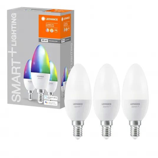 Набор из 3 смарт-ламп LED RGBW LEDVANCE SMART WIFI, B60, 5 Вт (40 Вт), 470 лм, диммируемый, белый и цветной свет, совместимый с amazon alexa/Google Assistant