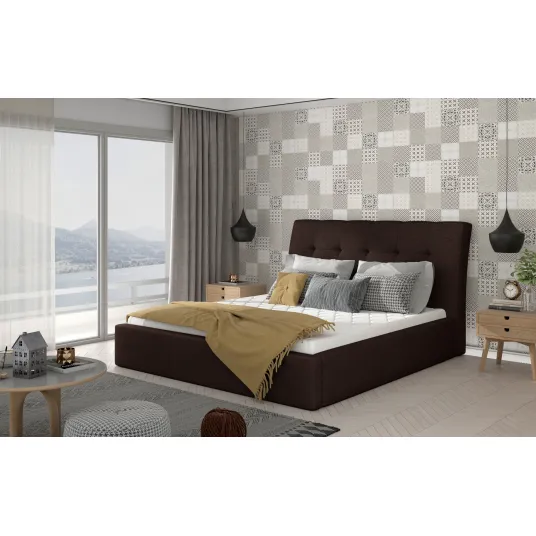 Pat dormitor Inge 140x200 + Cadru de lemn, Intunecat bronz