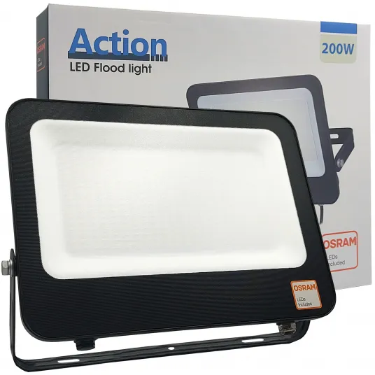 Proiector LED 200W (1400W) OSRAM Exterior Negru, 22000Lm, ACTION, IP65 Rezistent la apa, Aluminiu si sticla de inalta rezistenta, alb rece 5700K
