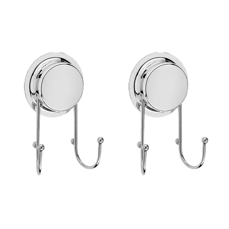 Set 2 Carlige cu ventuza, cu capac ABS cromat, pentru baie sau bucatarie, Argintiu