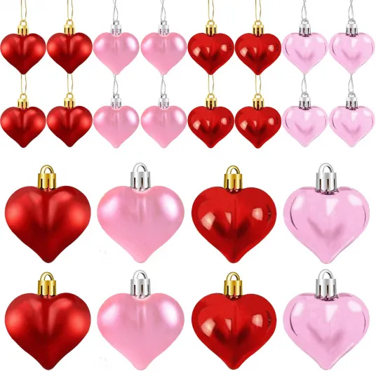 Set 24 globuri in forma de inima pentru bradul de craciun, Kaxyrooz, diametru 4.5 cm, Multicolor
