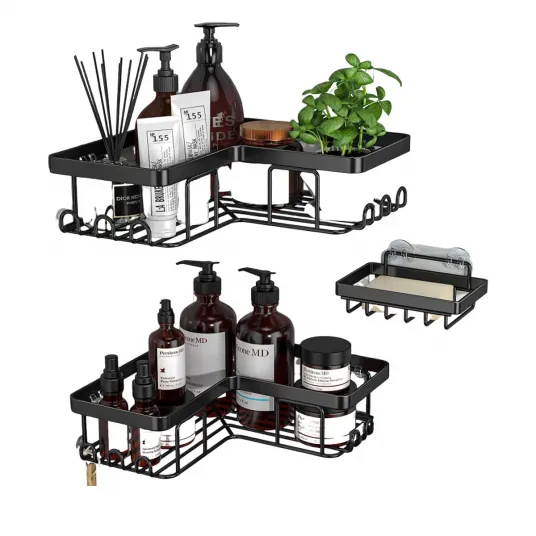 Set 3 Rafturi pentru baie, Raft de dus, Metal, Pentru depozitare in bucatarie, Organizator baie, NegruSet 3 Rafturi pentru baie, Raft de dus, Metal, Pentru depozitare in bucatarie, Organizator baie, Negru701913514701913514
