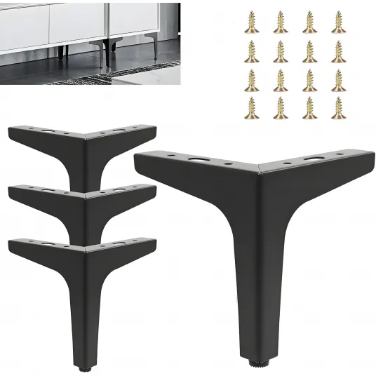 Set de 4 picioare de mobila, Fier, Fericire, Incarcare de pana la 800 kg, 10 cm, Negru