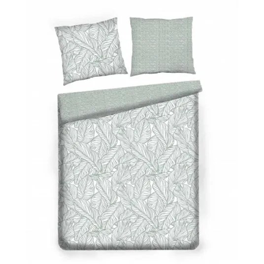 этот набор точно вам понравится! Сатиновое хлопковое постельное белье Falles представлено в белом и ярко-зеленом цветах. Спереди наволочки украшены узором из крупных экзотических листьев.