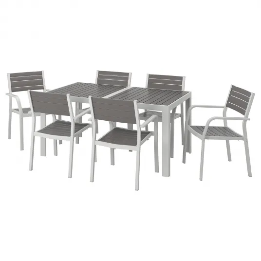 SJALLAND Стол+6 стульев+подлокотники, садовый, темно-серый/серый, 156x90 см