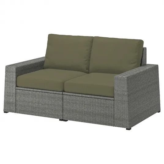 SOLLERON 2-местный модульный диван, садовый, темно-серый/FrOsOn/DUVHOLMEN темно-бежево-зеLENый, 161x82x88 см