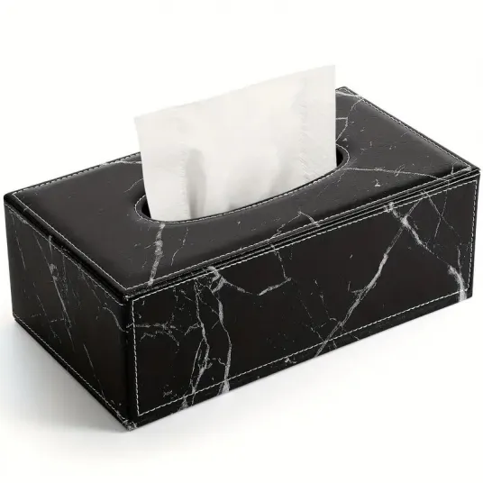 Suport servetele, GOSTOCK®, Pentru iubitorii de carti de acasa/birou/masina, Piele ecologica, Eleganta, 25.2x14x9.2cm, Negru/Alb