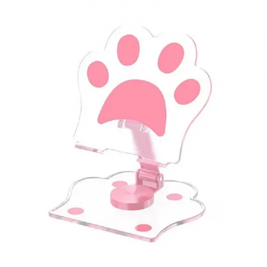Suport telefon si tableta, design labuta de pisica, rotativ si pliabil, acril transparent, roz.Suport telefon si tableta, design labuta de pisica, rotativ si pliabil, acril transparent, roz.223469561223469561