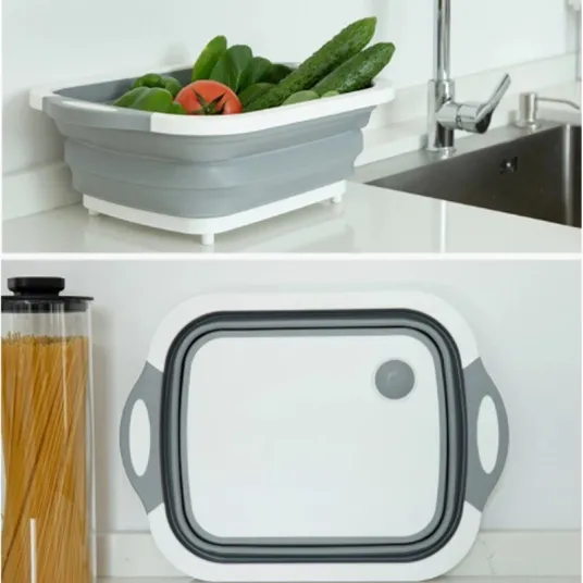 Tocator multifunctional / vas de spalare / cos fructe si legume, Ubitec ® pliabil, cu dop, 40x30x3cm, culoare alb/griTocator multifunctional / vas de spalare / cos fructe si legume, Ubitec ® pliabil, cu dop, 40x30x3cm, culoare alb/gri701895280701895280