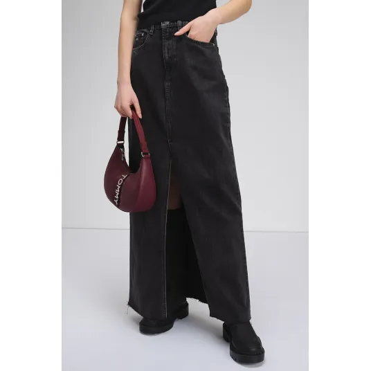 Tommy Jeans, Fusta lunga din bumbac cu croiala dreapta, Negru stins, 28