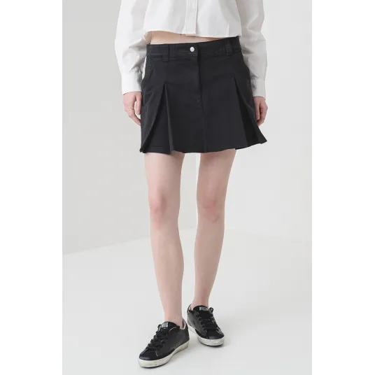 Tommy Jeans, Fusta mini din denim cu model plisat, Negru stins, M