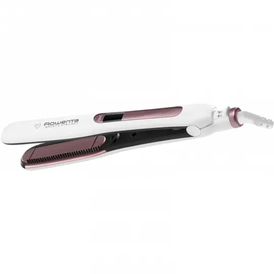 , Ceramic coating, ion conditioning, suitable for hair curling, swivel cord, automatic shut-off, display, security lock, 25х90mm plate, heats up to 200?С, 8 temperature settings, white