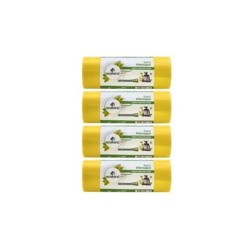 Saci menajeri , Ecofriend, 60l, 15 bucati , ultra rezistenti , galbeni, set 4 role