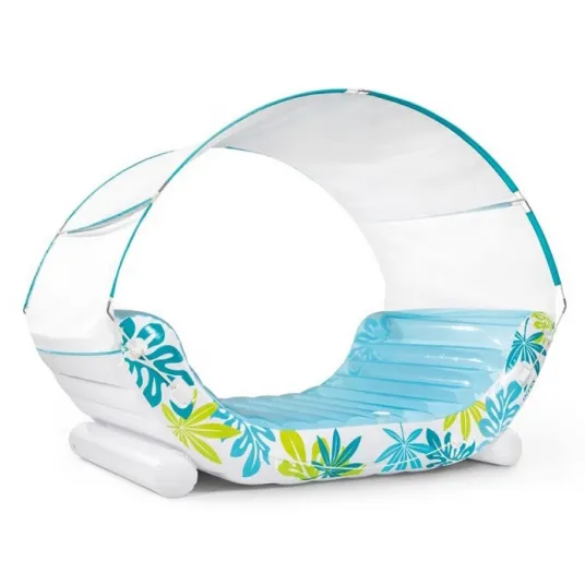 Saltea gonflabila pentru 2 persoane, cu parasolar detasabil Tropical Intex, 224x150 cm, inaltime 165 cm, material vinil / poliester, turrcoaz