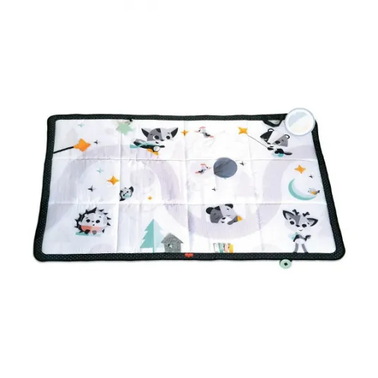 Caracteristici: O saltea spatioasa alb-negru special conceputa pentru a incuraja dezvoltarea bebelusilor inca din prima zi. Perfect pentru folosirea in spatii interioare si exterioare, dezvoltarea relatiei dintre parinti si bebelusi si comunicare. Recomandari in functie de varsta: 0 luni+: dezvoltarea relatiilor si comunicarea Inca din primele zile salteaua de joaca este perfecta pentru dezvoltarea relatiei dintre parinti si bebelus. Asezati-va langa micutul dumneavoastra si imbratisati-va, priviti-va unul pe celalalt, discutati si cantati impreuna, profitand de pretioasa ocazie de a va cunoaste si de a comunica. 2 luni+: dezvoltarea abilitatilor motorii - timpul pentru burtica Incurajati-va copilul sa stea pe burtica, tinandu-l ancorat in una din activitatile si caracteristicile saltelutei. Aratati-i ilustratiile magice, atrageti atentia bebelusului catre copacul cucu bau si a panglicilor din satin sau asezati oglinda intr-un unghi convenabil pentru ca bebelusul sa-si exploreze propria refelctie. 5 luni+: cognitie Cand copilul dumneavoastra creste si sta in picioare, lasa-l sa se bucure de zona de joc confortabila atat in spatii interioare cat si exterioare si sa exploreze diversele caracteristici si activitati ale saltelutei, dintr-un unghi nou si interesant. Dimensiuni produs: 150 x 100 cm Varsta recomandata: 0 luni+