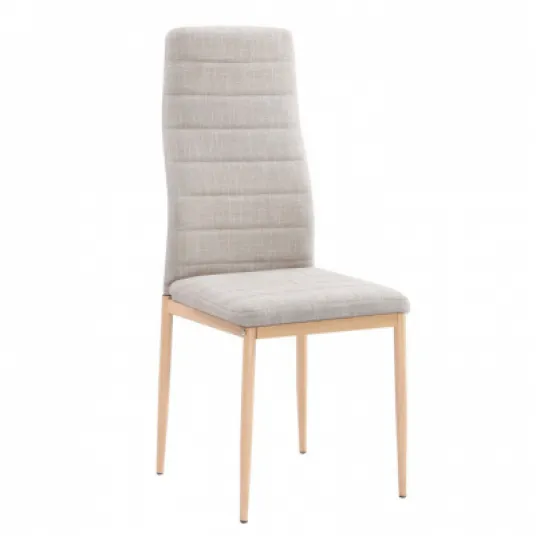 Scaun modern de bucatarie sau dining , cadru din metal vopsit imitatie fag ,tapiteria din stofa crem bej .Calitate deosebita ! Rezista la greutate pana la 110 kg ! Scaunul se livreaza neasamblat,in colet. Coletul contine tot ce este necesar pentru asamblare (accesorii,kit de asamblare) . Usor de asamblat !
