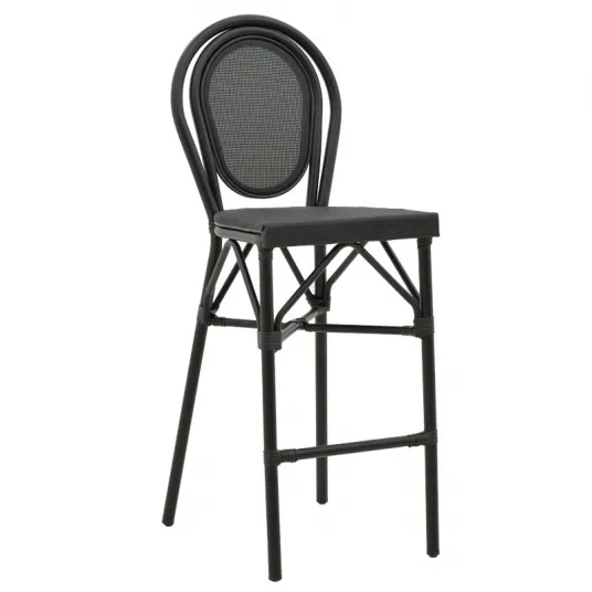 Scaun de bar Dezyan pakoworld negru aluminiu-negru textil 41.5x53.5x116 cm Daca sunteti in cautarea unui scaun rezistent Deyzan este aici pentru dvs.Ideal pentru echiparea si decorarea exteriorului casei dvs. La fel si pentru Airbnb, locuri de intalnire, restaurante si cafenele. Specificatii: *Cadru stabil din aluminiu de calitate excelenta (Dia.28xT1.5mm) cu rezistenta la stres si uzura. < br> *Spatarul si sezutul sunt realizate din textilen 4x4 rezistent la UV. *Potrivit pentru utilizare in interior sau acoperit exterior. *Oferte in negru cu textil negruDimensiuni:Lungime: 41.5 cm Latime: 53.5 cm Inaltime: 116 cm Observatii:Produsul se livreaza asamblat in ambalaj din fabrica. Nuanta de culoare a produsul poate diferi usor de reprezentarea sa fotografica de pe ecran.