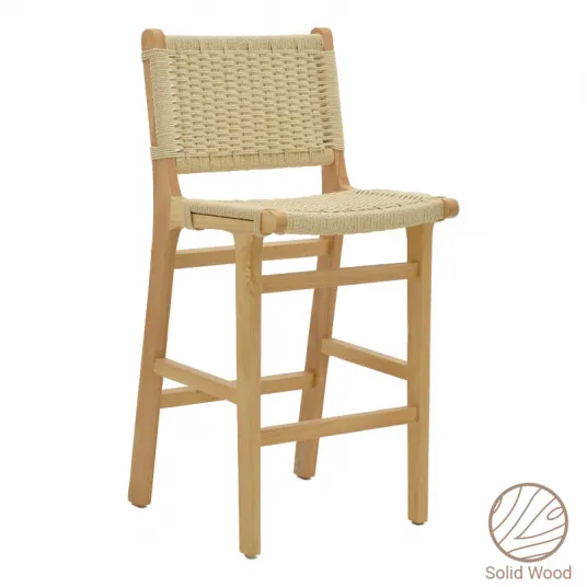 Scaun de bar Julien lemn de arbore de cauciuc culoare lemn natural - funie culoare lemn naturala 45x46x95cm
