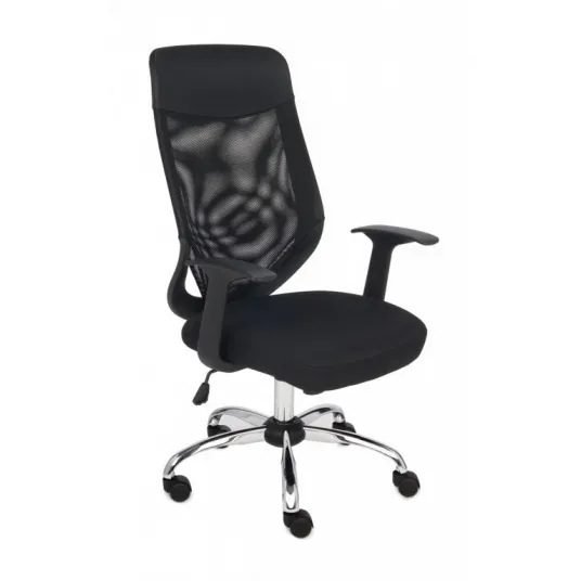 Scaun de birou popular, economic, cu spatar cu plasa mesh.Spatarul este tapitat cu plasa mesh, in timp ce partea superioara este tapitata cu piele ecologica de culoare neagra.Sezutul este tapitat cu tesatura cu membrana Aero, respirabila, disponibila in 3 culori: negru, albastru marin si gri. Descopera-le in sectiunea „Materiale (tesaturi)”.Cotierele cu inaltime fixa sunt realizate din plastic.Scaunul este echipat cu mecanismul Tilt; dupa ce eliberezi blocatorul, te poti „legana” in scaun sau il poti bloca din nou in pozitia standard de lucru.Rezistenta spatarului la inclinare este reglabila, ceea ce face posibila adaptarea scaunului la greutatea si la nevoile utilizatorului.Inaltimea sezutului este reglabila in mod lin.Baza din otel cromat este durabila, dar eleganta.Scaunul este dotat in standard cu role potrivite pentru suprafete moi (mocheta, covoare).Optional, poti comanda role moi care nu zgarie suprafetele dure precum parchetul sau gresia - optiune suplimentara la adaugarea produsului in cos.Scaunul are uncertificat de rezistenta si siguranta a utilizariiemis de REMODEX Zakład Badań i Wdrożeń Przemysłu Meblarskiego (Institutul de Cercetare si Implementare in Industria de Mobilier REMODEX, din Polonia).Scaunele sunt disponibile in depozitul nostru, pregatite pentru expediere imediata.Modelul este acoperit de o garantie a producatorului de 2 ani, prevazuta in sistem Door-to-Door pentru confortul tau deplin.Iti vom livra produsul GRATUIT la adresa indicata, oriunde in tara.Daca nu corespunde asteptarilor tale, ai dreptul de a-lreturna fara probleme in termen de 14 zile de la livrare.Dimensiuni model:*Dimensiunea nominala poate varia usor in functie de configuratia produsului. Toleranta dimensionala intre produsele cu aceeasi configuratie este de +/- 5 mm.