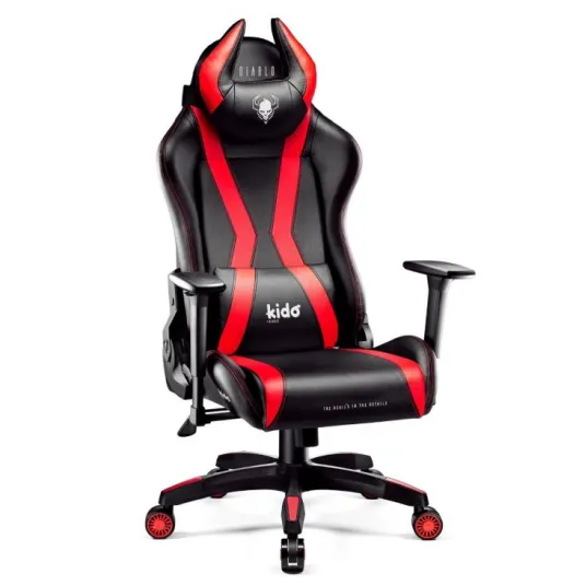 Scaun de gaming pentru copii Diablo X-Horn 2.0 Kids: negru si rosuScaunul de gaming Diablo X-Horn Kidseste o piesa de mobilier confortabila si comoda pentru copiii care petrec ore indelungate in fata calculatorului. Scaunul de gaming a fost proiectat avand in vedere confortul utilizatorului si postura corecta.Forma sa ergonomica ofera un sprijin adecvat pentru spate si gat, astfel ca utilizatorul nu se va simti obosit nici dupa o sesiune lunga de gaming.Combinatia de negru si rosu a design-ului adauga o nota unica, facand scaunul de gaming un accesoriu excelent pentru orice camera.Scaunul de gaming este fabricat din materiale de inalta calitate, cu piele ecologica HDS™ care este rezistenta la abraziune si asigura durabilitate pentru o perioada lunga de timp.Sezutul scaunului de gaming este umplut cu o cantitate mare de spuma, astfel ca este foarte elastic, confortabil si nu se deformeaza.Tetiera distinctiva si perna lombara ergonomica sunt umplute cu spuma Memory flexibila, asigurandu-se ca aceste elemente revin intotdeauna la forma lor initiala.Datorita ajustarii inaltimii si a ajustarii 3D a cotierelor, scaunul de gaming X-Horn poate fi reglat pentru a se potrivi perfect utilizatorului.Cotierele reglabile 3D ARMTECH™ HYBRID SOFTTOUCH se disting prin cele trei niveluri de reglare: sus-jos, fata-spate si stanga-dreapta. Dispun de un strat superior moale pentru un plus de confort.Scaunul de gaming este echipat cu mecanismul Tilttech™care ofera posibilitatea de balansare placuta, cu blocarea unghiului de inclinare selectat.Baza cu amprenta la sol extinsaasigura o utilizare stabila, iar rolele din cauciuc moale PFC™ 360 protejeaza podeaua de posibile zgarieturi.In magazinul nostru, scaunul de gaming X-Horn estedisponibil la un pret atractiv, cu livrare gratuita. Este alegerea perfecta pentru orice copil care doreste sa se bucure de confort si stil in timpul petrecut in fata calculatorului sau a consolei.Sarcina maxima suportata a scaunului este de 90 kg.Scaunul de gaming este acoperit de o garantie a producatorului de 2 ani in sistem Door-to-Door pentru confortul tau deplin.Iti livram scaunul de gaming GRATUIT oriunde in tara.IMPORTANT: Daca scaunul de gamingnu corespunde asteptarilor copilului tau, in conformitate cu legislatia in vigoare, ai dreptul sa il returnezi in termen de 14 zile de la cumparare.Dimensiuni:222990786222990786