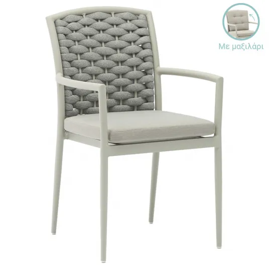Scaun de gradina Moritz aluminiu gri-textilena gri-bej perna gri-bej