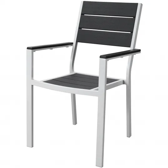 Acest scaun de gradina combina metalul si plasticul pentru a crea un design robust si rezistent la intemperii. Culoarea gri arata elegant, se potriveste perfect cu orice decor din curte si este, de asemenea, rezistenta la UV si decolorare. Nu trebuie sa va faceti griji ca scaunul se va deteriora in timp, este construit pentru a rezista si va ramane nou, chiar si dupa ani de utilizare.