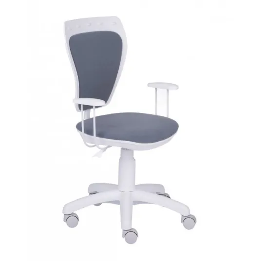 Ministyle este un scaun de birou pentru copii cu sezut si spatar tapitate, foarte apreciat de clientii nostri.In versiunea White, elementele din plastic si cele din metal ale scaunului sunt realizate in culoarea alb.Scaunul este disponibil in tesatura Micro placuta la atingere si respirabila, cu mai multe variante de culoare. Poti descoperi mostre in sectiunea„Materiale (tesaturi)”si poti vedea contravaloarea tipurilor de material in lista de preturi a produsului.De asemenea, poti vedea scaunul in toate culorile disponibile in sectiunea „Galerie”.In oferta noastra sunt disponibile, de asemenea, si scaune Ministyle Black, cu cadru negru, intr-o gama larga de culori ale tesaturii. Consulta sectiunile„Din acceasi gama”si„Produse Similare”.Acest model are cotiere fixe, confortabile.Scaunul dispune de reglarea inaltimii sezutului, in mod lin, cu ajutorul unui piston pneumatic, dar si de reglarea inaltimii spatarului si a adancimii sezutului (distanta dintre sezut si spatar).Functiile scaunului sunt prezentate, de asemenea, si in filmuletulde prezentare (clickaici).Baza usoara din nailon este foarte stabila. In standard, scaunul vine dotat cu role role dure potrivite pentru suprafete acoperite cu mocheta sau covor. Rolele suntautoblocantesi se rotesc atunci cand sunt supuse unei sarcini.Poti comanda suplimentar un set de role moi, fara sistem de autoblocare,la adaugarea produsului in cos. Acestea sunt recomandate mai ales pentru suprafetele dure precum parchetul sau gresia, eliminand riscul zgarierii.Scaunul pentru copii este conceput pentru utilizatori cu o greutate de pana la 45 kg.Modelul prezentat este disponibil in depozitul nostru sise livreaza in cel mult 3 zile lucratoare.Scaunul este acoperit de o garantie a producatorului de 3 ani in sistem Door-to-Door pentru confortul tau deplin.Iti livram scaunul GRATUIT oriunde in tara.IMPORTANT: Daca scaunul nu corespunde asteptarilor tale, in conformitate cu legislatia in vigoare, ai dreptul sa il returnezi in termen de 14 zile de la cumparare.Dimensiuni: