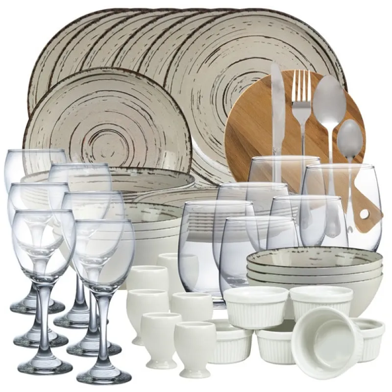 Serviciu Complet de Masa, 73 piese, pentru 6 persoane, Crem deschis, decorat cu linii maro