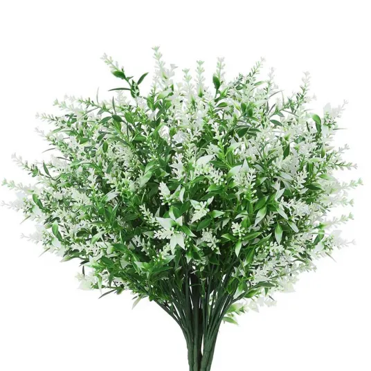 Set 10 Buchete Flori Artificiale, Axroad Mall, Rezistente UV, Nu se estompeaza usor, Usor de intretinut si durabil, Pentru decorarea veranda a gradinii in aer liber, 35cm Inaltime, Plastic, Verde/Alb