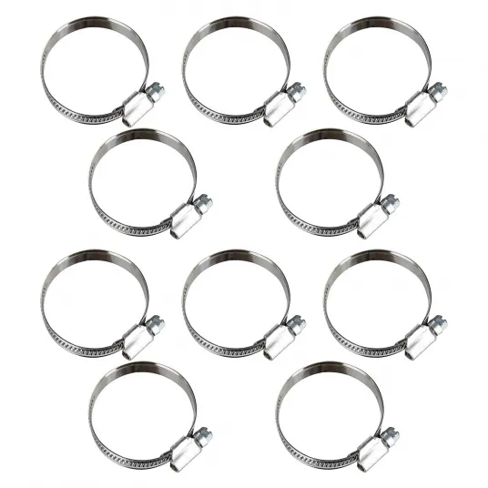 Set 10 coliere furtun motopompa, SINBINTA, Diametrul reglabil, Suruburi de fixare, Margine Lustruita Neteda, Antioxidare, Rezistent la coroziune, Reutilizabile, Folosit in automobile, tractoare, nave, mine, produse chimice, Inox, 27-51 mm, Argintiu