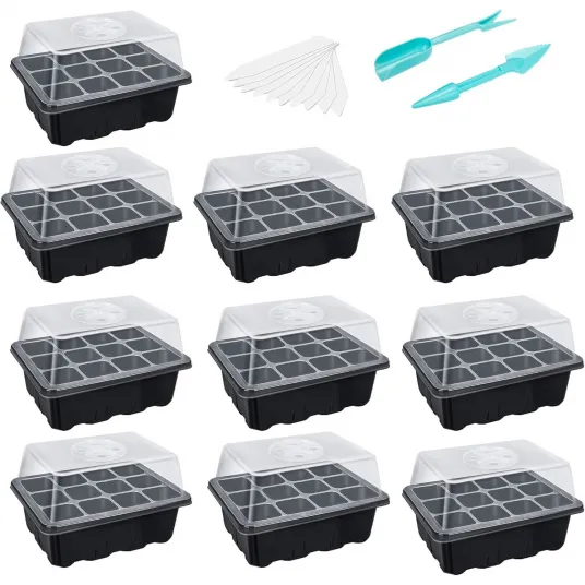 Set 10 cutii pentru rasaduri din polipropilena, GOXAWEE, G5231, 12 orificii, NegruSet 10 cutii pentru rasaduri din polipropilena, GOXAWEE, G5231, 12 orificii, Negru702291612702291612
