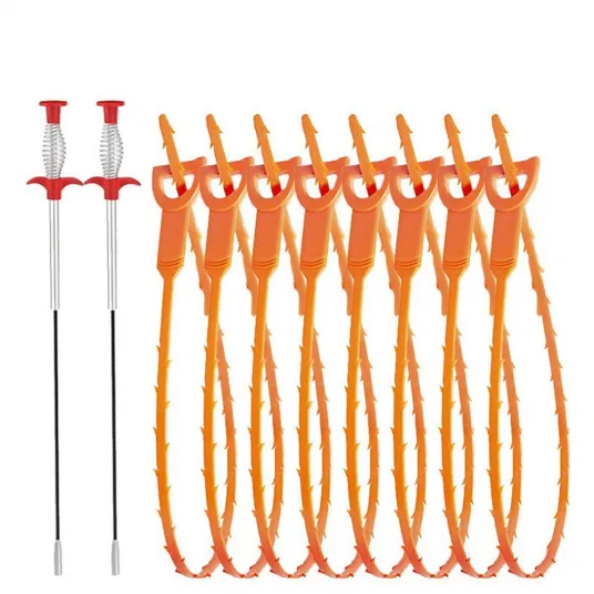 Set 10 instrumente curatare scurgeri, JENUOSВ®, 60 cm, Deblocarea tevilor de la chiuveta din bucatarie si baie, Multicolor
