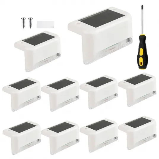 Set 10 lumini solare pentru gard, Darklove, Cu surubelnita, Panou solar incorporat, 600 mAh, IP42 Wateproof, Usor de instalat, Pentru scari, gard sau balustrada, ABS, 7.8x4.7x2.8 cm, Alb