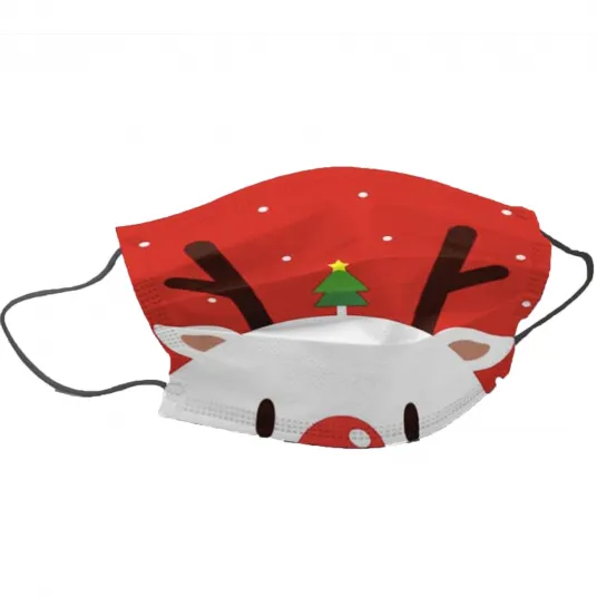 Masca medicala chirurgicala TYPE 2R cu 3 straturi si 3 pliuri, protectie 98%, set 10 bucati cu imprimeu de Craciun.