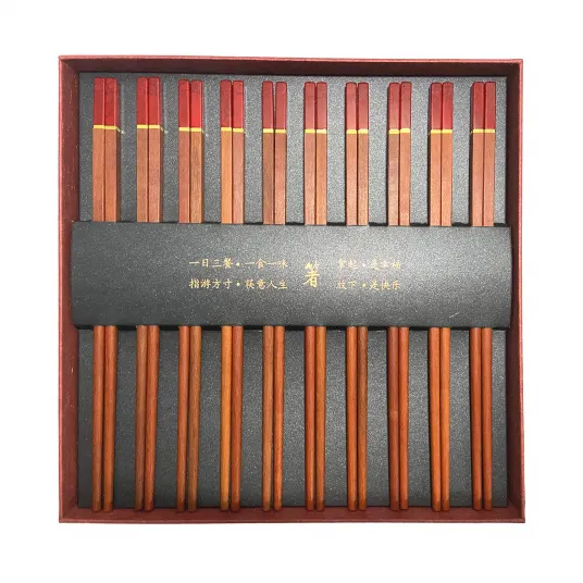 Set 10 perechi betisoare din lemn de santal rosu, decor acrilic, 26.5cm, maro inchis