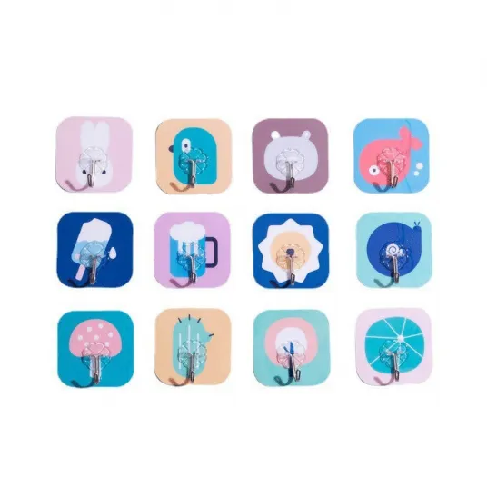 Set 12 Cuiere cu Autoadeziv Foarte Rezistent pentru Haine, Accesorii, Prosop, Halat, Inox/PVC, imagini de desene animate,Culoarea si stilul sunt aleatorii